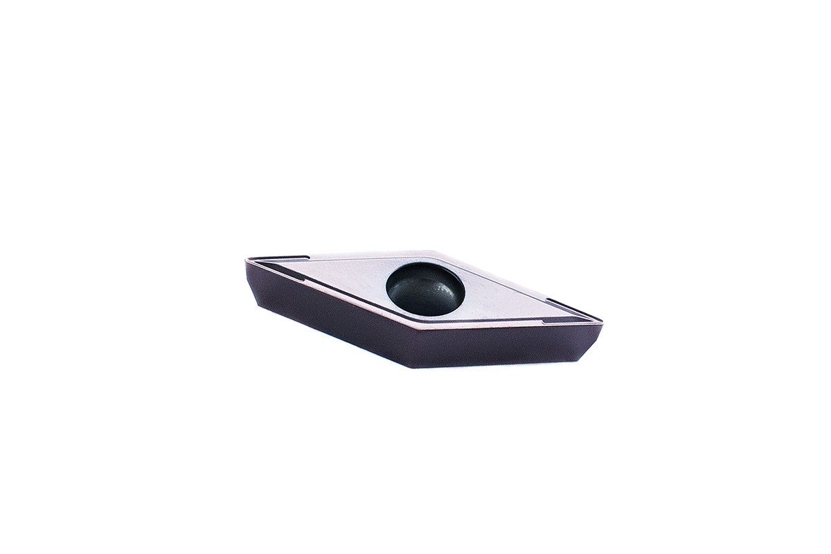 Пластина твердосплавная VCMT с PVD покрытием (кремний +TiAlN). Зернистая подложка Micro WC с высоким содержанием Co сохраняет прочность режущей кромки, имеет наименьший коэффициент трения, хорошую нанотвердость и силиконовое покрытие с хорошей термостабильностью. Сплав очень хорош для непрерывного точения и фрезерования нержавеющей стали.